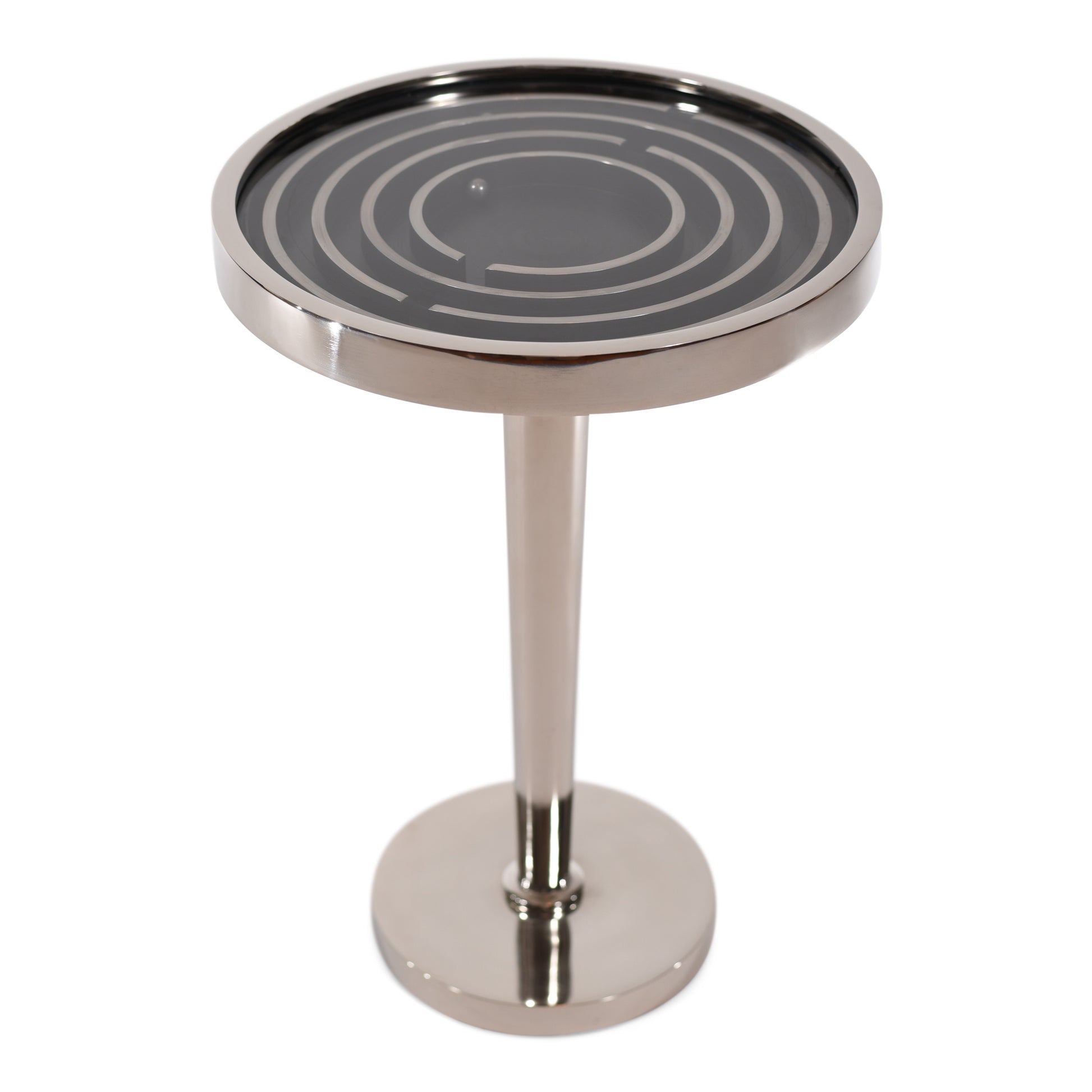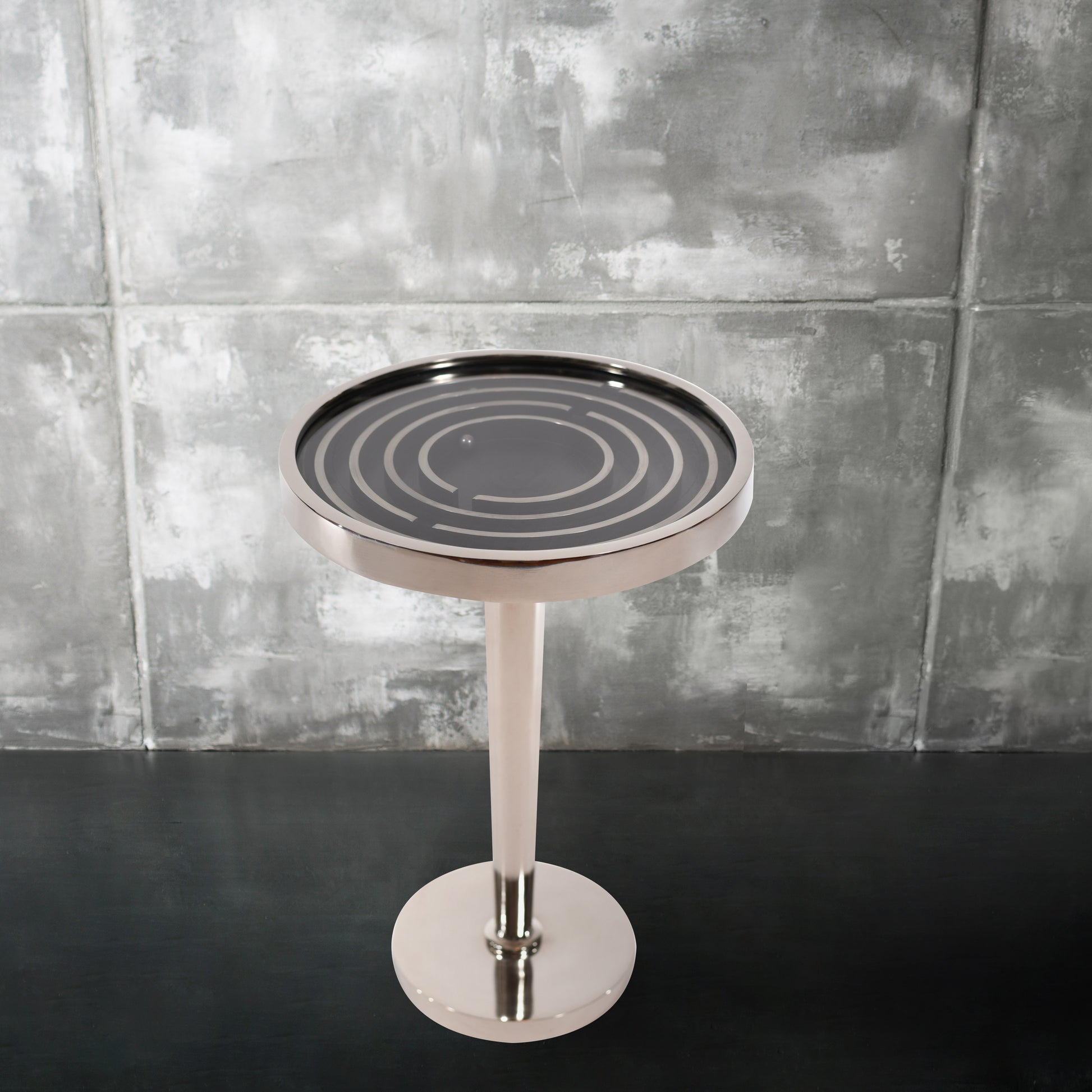 Antique Round Aluminum Side Table With Maze Puzzle Game | End Table (DH8016)