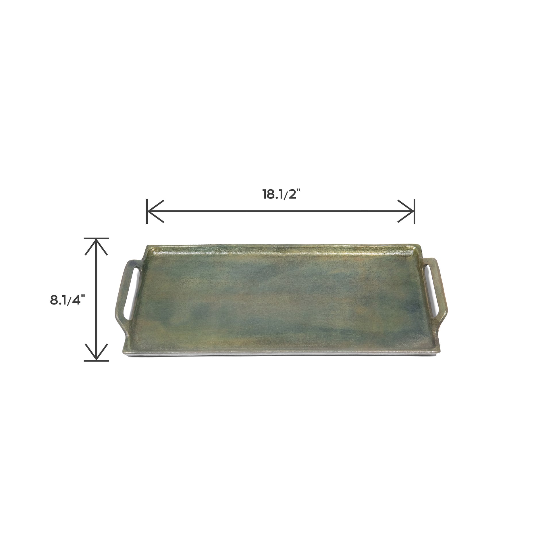 Antique Large Raw Aluminum Rectangular Tray with Handles (DH6004)