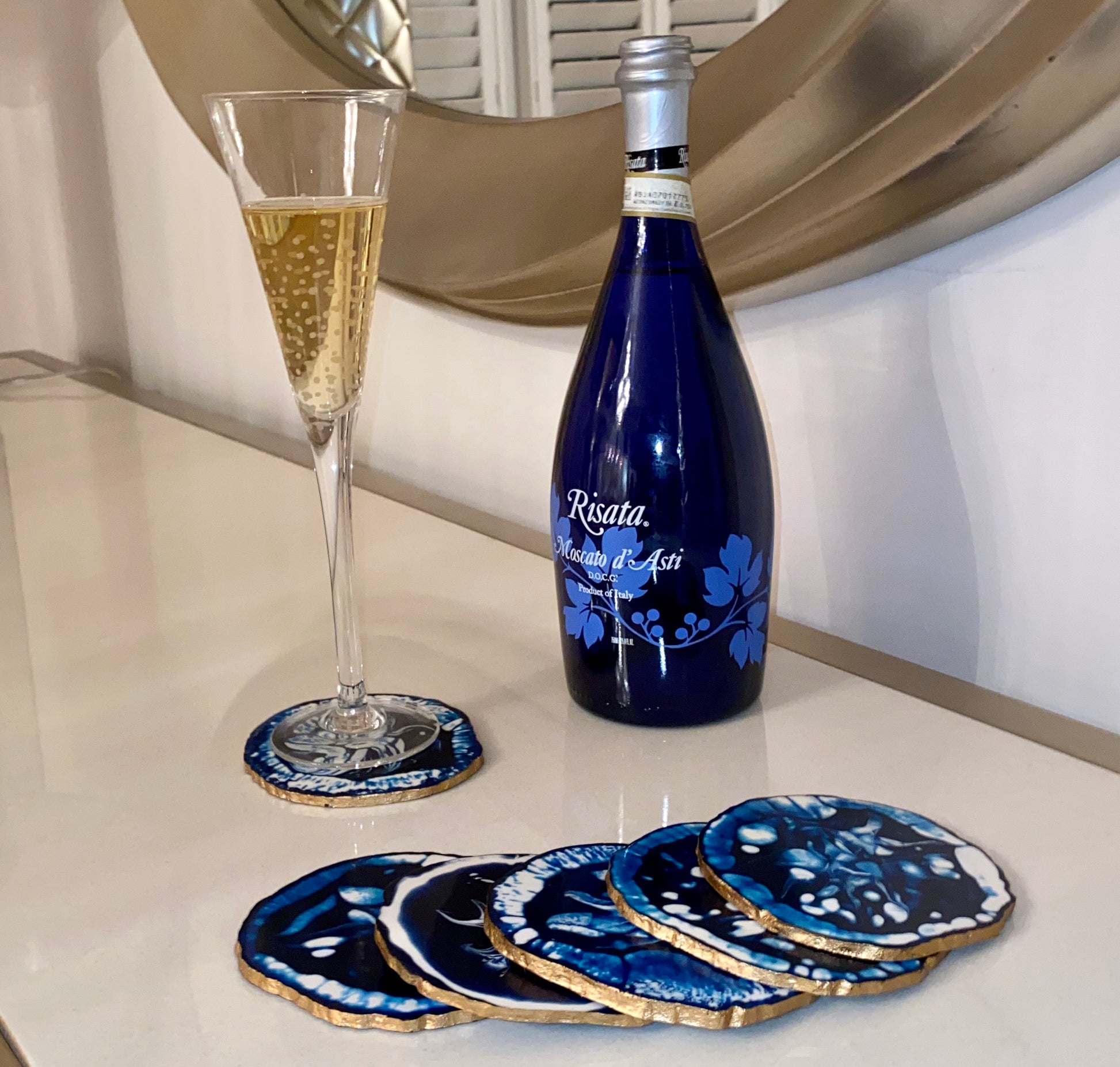 Decorative and unique round resin ivory coaster is a perfect decorative accent around the house such as candle holders, spoon and chopsticks rest and to serve drinks in style at a fancy dinner and stylish tabletop decor. This round coasters can gradually absorb water drops falling down from the covering of the cup, keeping the cup base and the tabletop stays dry. This ivory coaster comes in blue color and has a wonderful abstract design that will match with any kind of your home decor theme. It has an excellent gift idea for Kitchen lovers.