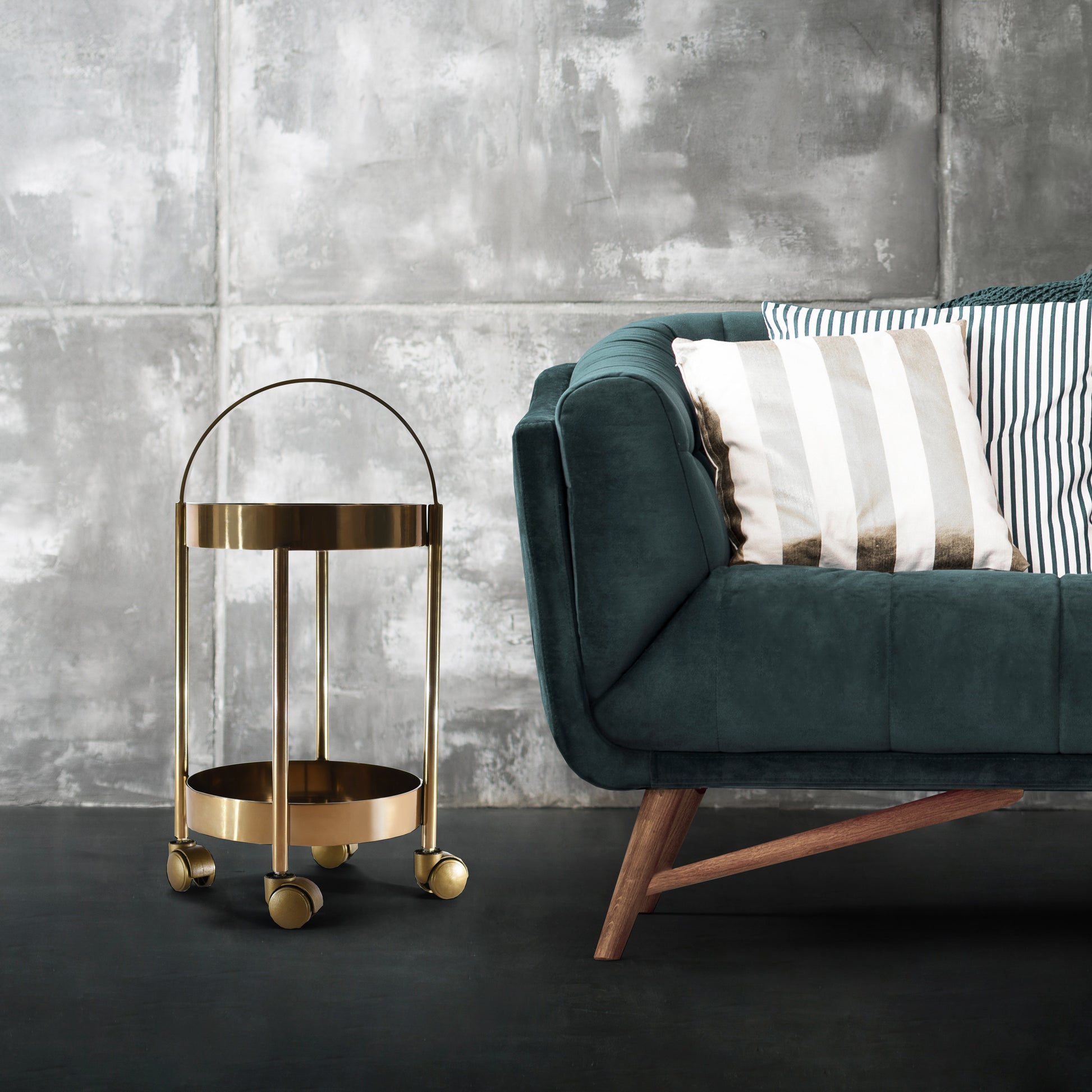 Decorative Stainless Steel Serving cart provides a perfect additional space resolution for those with minimal kitchen counter space or home space. Includes Four rolling wheels at the bottom are manageable, which is useful for you to move to any corner in your home or room and use it anywhere. This Storage rolling cart made from heavy-duty stainless steel with a gold color finish. You can use this Metal serving rack as hold any stuff such as utensils, table accents or cups, as a corner table, as a decorative accent table, etc.